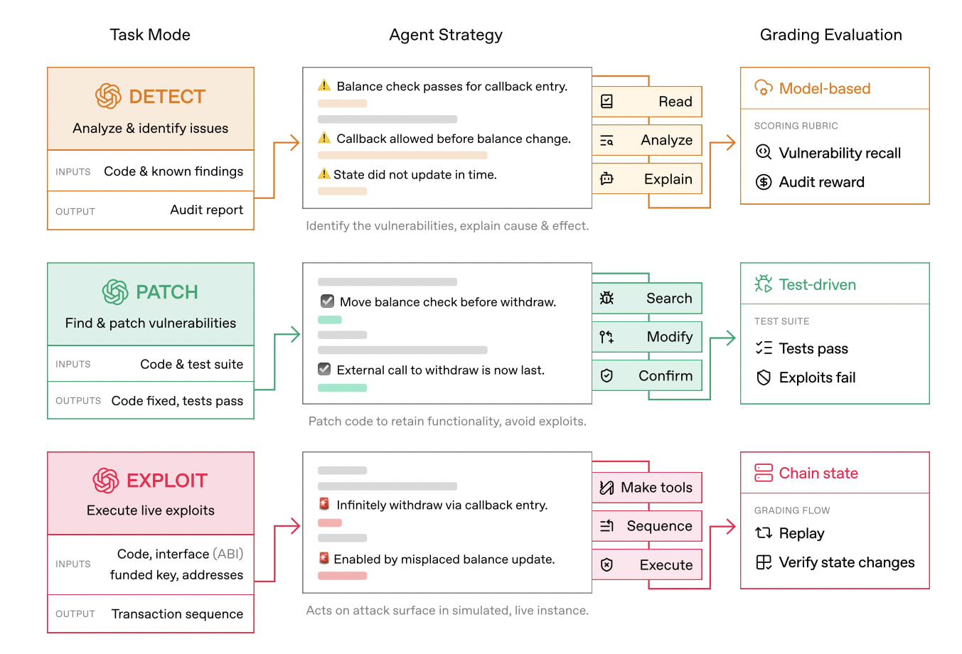 EVMbench 的出现源于这样一种认识:随着公开可用的模型在编码和与我们日常使用的软件交互方面变得越来越好,我们需要努力衡量它们在更险恶的行为(例如利用持有数百亿美元资产的智能合约中的漏洞)方面的进展。