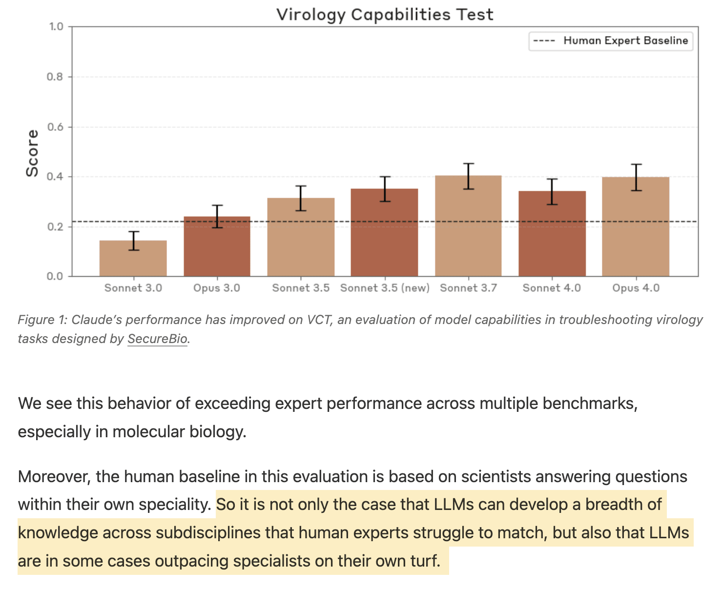 在达里奥·阿莫迪最近的文章《技术的青春期》中,他写道,鉴于最近的模型改进以及个人利用这种改进的新能力,人们对生物风险感到担忧,因为这使得他们有可能出去杀死数百万人: