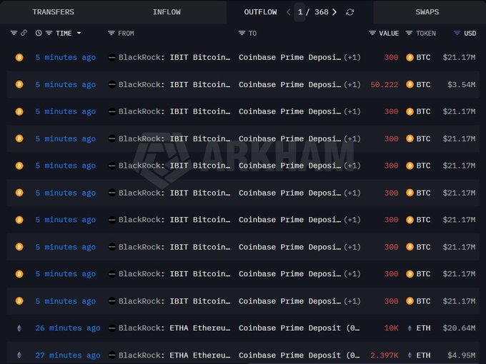 贝莱德刚刚将价值 1.53 亿美元的BTC和ETH转移到了 Coinbase。 可能是由于资金流入持续增加而进行的ETF再平衡。 大型企业仍在进行布局。 # BingX #加密货币