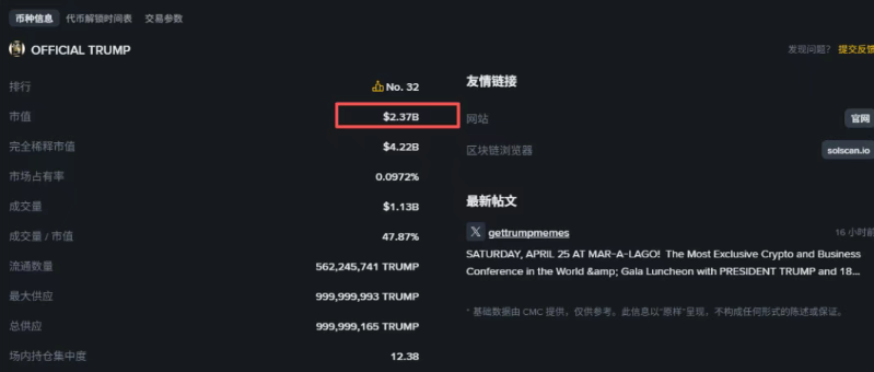 客观数据摆在这里:TRUMP就是一个纯MEME币,卵用没有,就是特朗普表情包+政治信仰的衍生品