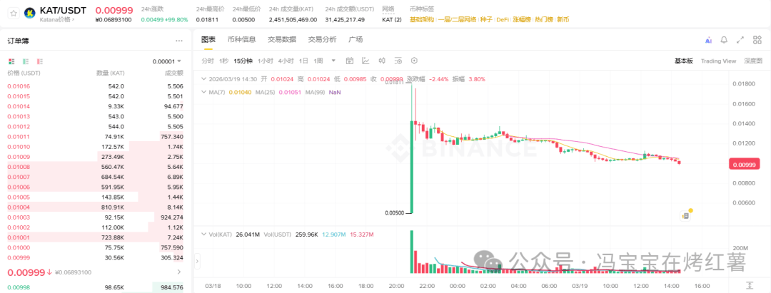 KAT这波真是跌穿0.01了,上了币安和OKX现货也就这表现。让心存幻想没清仓的错付了,这届项目方确实有点烂。