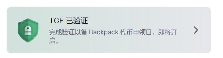 用户领取需登录 Backpack 官网或移动应用完成 TGE 验证程序,系统将根据快照时积分相对占比自动计算并发放份额 Mad Lads NFT 持有者仅需连接对应钱包即可自动获配,无需额外操作。用户完成后,可在积分——成就里看到「TGE 已验证」徽章。