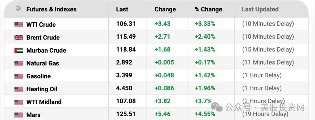但这波风险偏好的试探极其脆弱,因为最核心的宏观资产 —— 原油,并没有给出配合的信号。盘前 WTI 原油期货已重新逼近 102 美元,布伦特原油更是升至 116 美元附近高位。