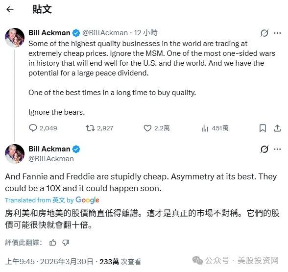 此外,受大佬 Bill Ackman 唱多刺激,房利美( $FNMA )与房地美( $FMCC$FNMA$FMCC )分别飙升超 51% 和 47%,上演了罕见的资金逼空。