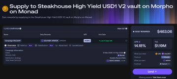 我看了看,底层资产大部分是USD1,其次就是12.2万的wsrUSD,APY为14.47%,全部都是MON代币激励,这个vault是3.31号才上线