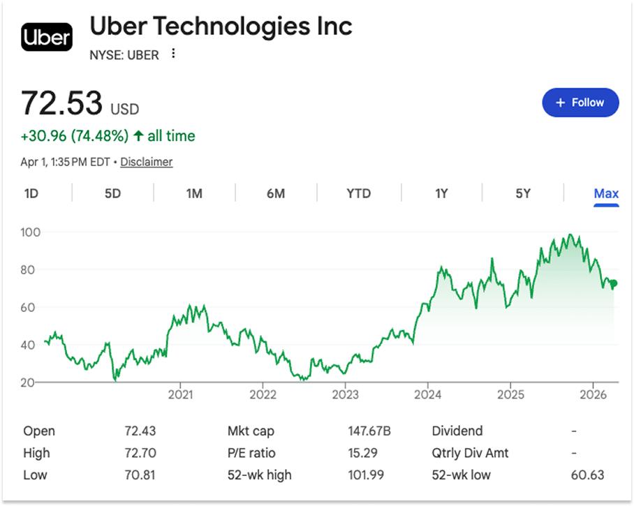 然而……优步仍然是一家上市公司,市值徘徊在 1500 亿美元左右。