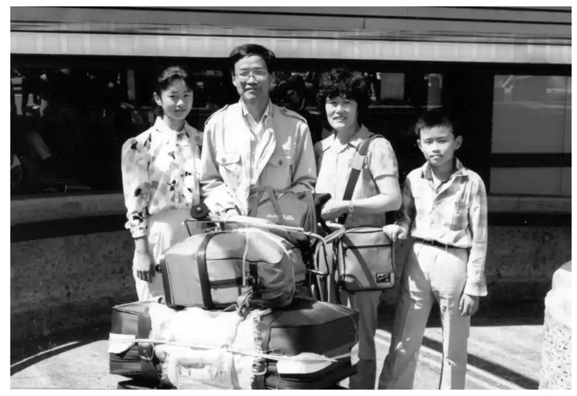 CZ 一家的合照,摄于 1989 年 8 月 6 日,初抵温哥华机场