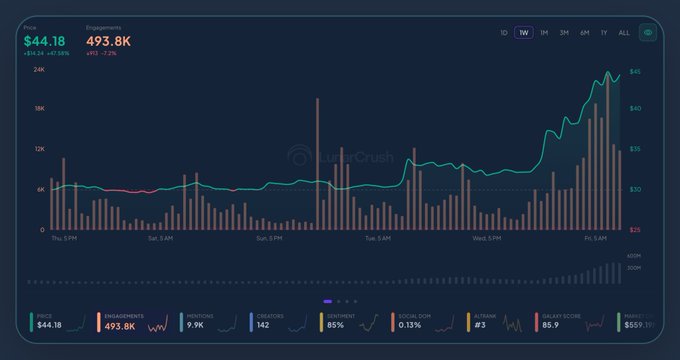 目前隐私保护的呼声非常高,DASH 也因此获得了正面的成长动能。 $DASH 受到两大催化剂的影响: 1. Dash 已整合到 Zebec 的串流工资平台中,使其在快速、私密的支付领域拥有了实际应用场景。 2. 亚利桑那州正在推动支持加密货币的法案,据报道,ARK Invest 也增加了 DASH。 所有社交和市场指标今天均大幅上涨。 请造访 LunarCrush 以取得最新数据。 lunarcrush.com/topic$dash