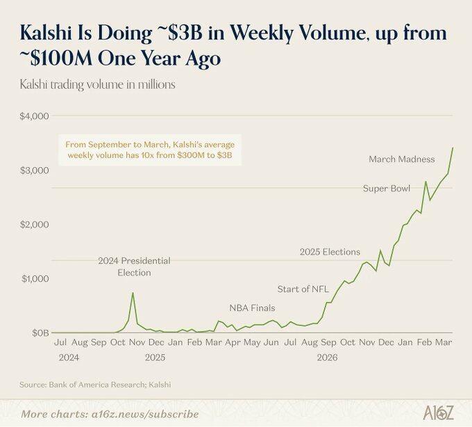 长期以来,预测市场总是被某些“高光时刻”定义——美国大选、超级碗、疯狂三月。这些事件在新闻周期中占据主导,也自然吞噬了大部分交易量,让外界误以为预测市场的价值仅止于此。