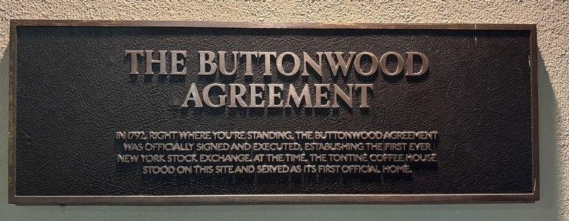 1792 年 5 月 17 日,24 个经纪人在华尔街一棵梧桐树下签署了《梧桐树协议》(Buttonwood Agreement),约定互相交易股票。这是纽约证券交易所(NYSE)的前身。