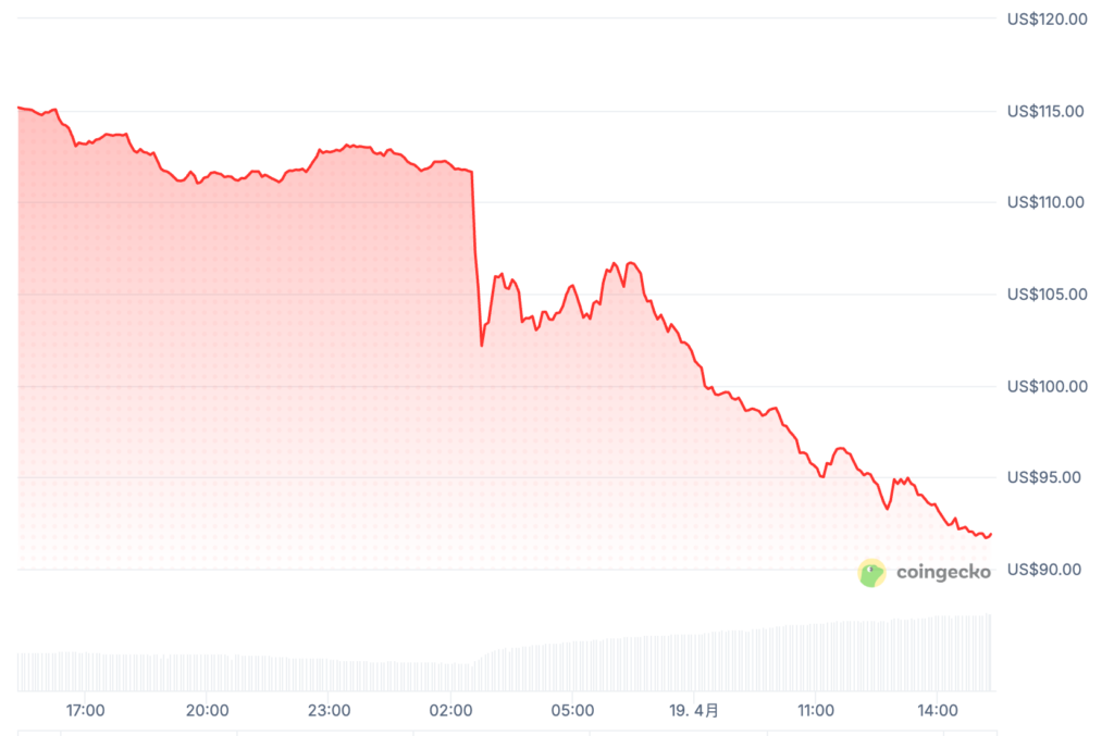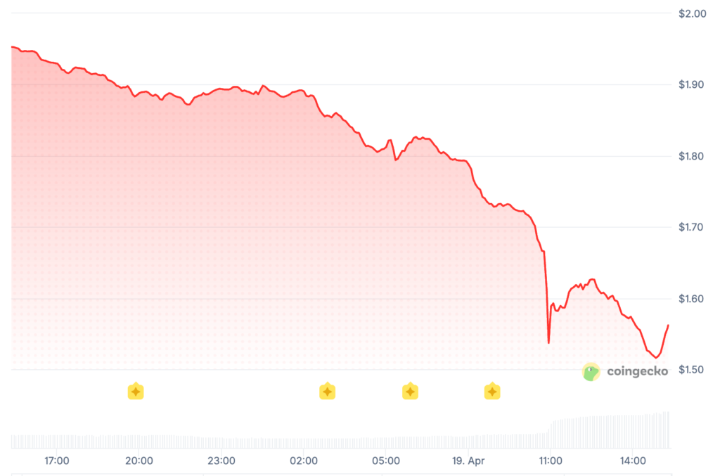 恐慌情绪同步反映在币价,与事件相关协议代币出现明显跌幅: