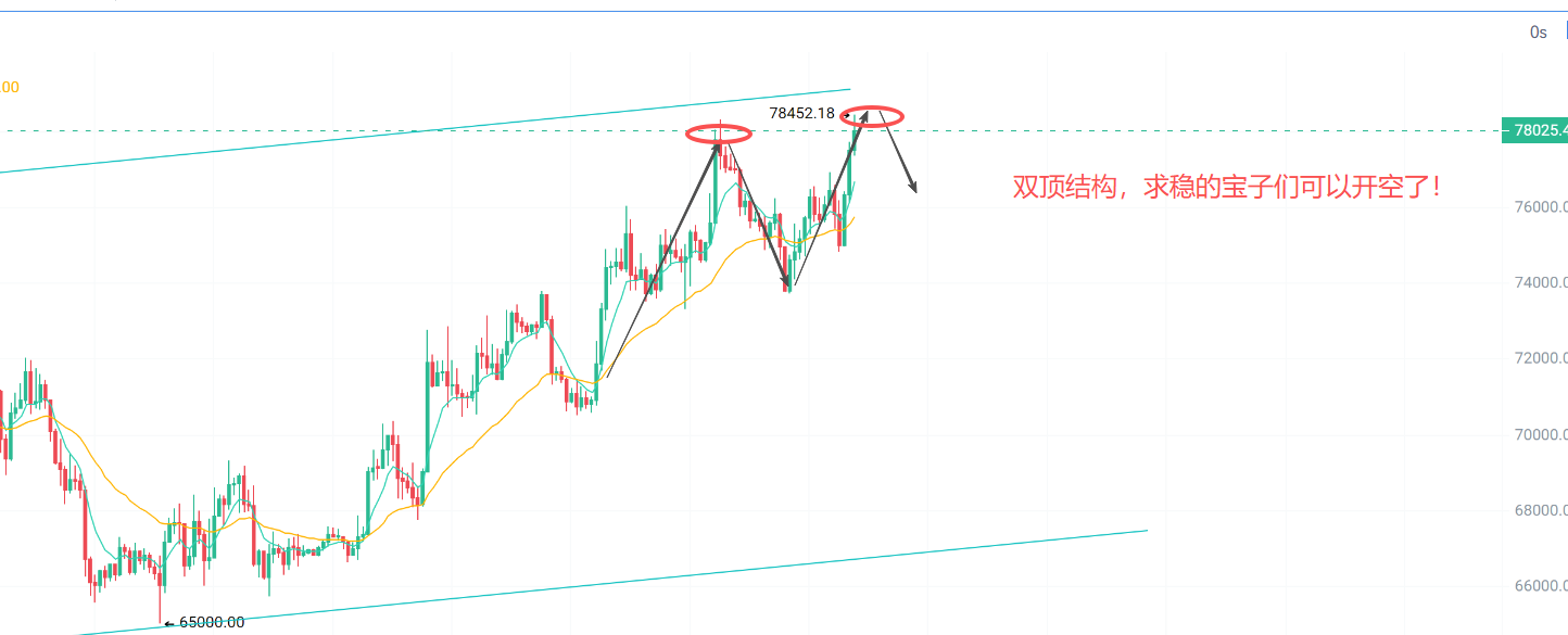 当前短中期均线开始拐头向上,形成一定支撑,但长期均线依旧下行,压制仍在。量能方面虽有回暖,但未明显超过前期下跌时的放量水平,说明更多是抄底资金参与,趋势性资金尚未回流。短线重点关注78–80K压力区,若放量突破有望延续反弹,否则仍需警惕回落甚至二次探底;下方75–73K为关键支撑,一旦失守,行情可能重新转弱。