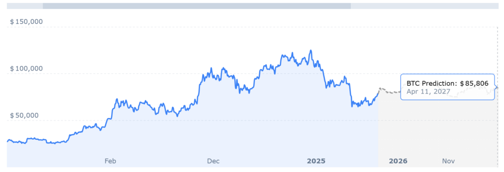 尽管各大机构持续对BTC价格做出大胆预测,但像 CoinCodex 这样的技术平台则给出了相对保守的BTC预测。根据 CoinCodex 的BTC统计数据,比特币预计将在 2026 年底达到 8 万美元。 CoinCodex 也补充道,比特币价格的高峰可能会在之后出现,并在 2030 年后迎来强劲上涨势头。