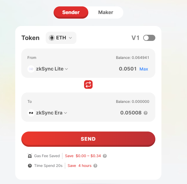 3、资金在zk lite 的情况下可以用orbiter进行跨链到 zk era:手续费大概2刀左右,到账时间相对来说也较快