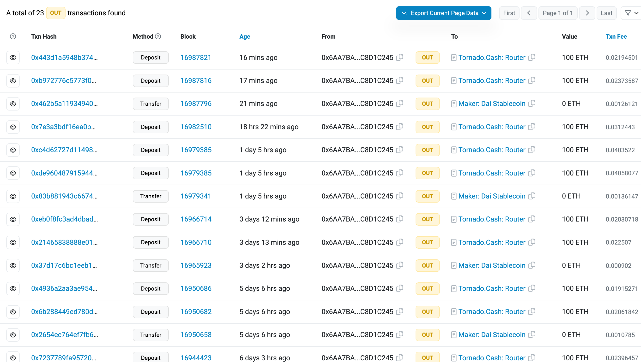 攻击者的资金来源和流向都与Tornado.cash有关。仅从地址0x6AA7BA04DD9F3a09a02941901af10d12C8D1C245开始,就有 1500 ETH流入 Tornado.cash。