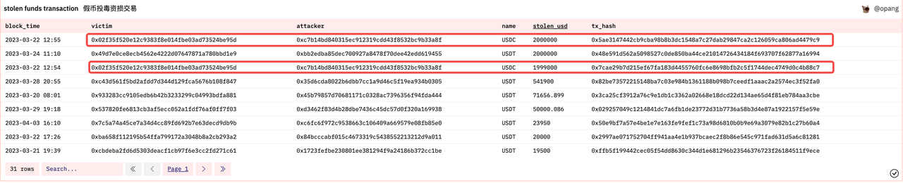 最严重的受害者在连续两笔交易中错误地转移了总计价值 400 万美元的 USDC( 0x02f35f520e12c9383f8e014fbe03ad73524be95d )。