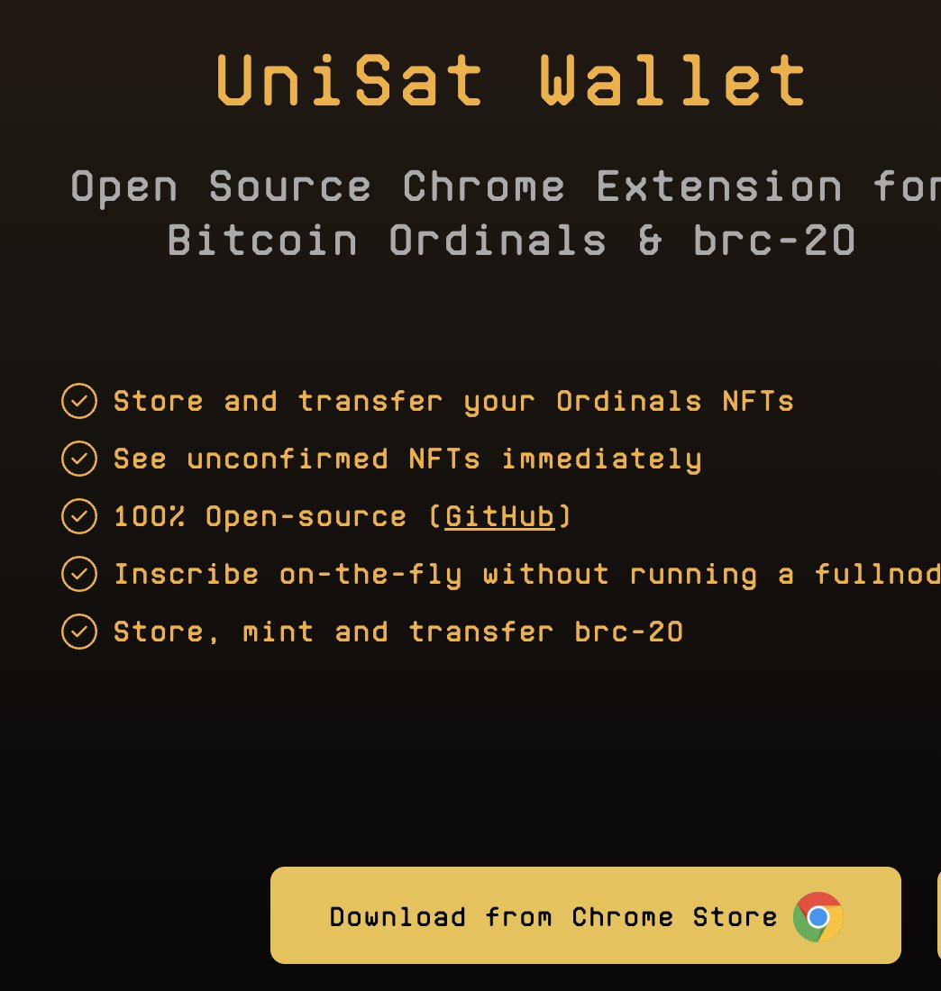 访问unisat.io, 下载chrome插件,创建过程类似于小狐狸,需要离线保存助记词。