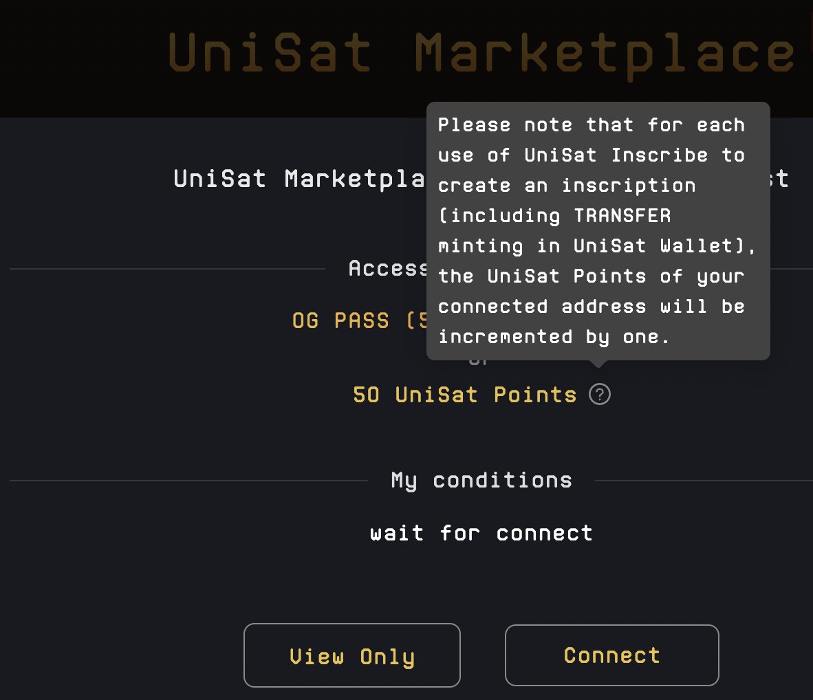 unisat上购买需要有50个points的要求,这个需要在unisat上有50个inscribe,unisat 官推 @unisat_wallet也说明了未来很快会降到20个points要求。