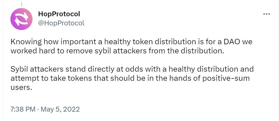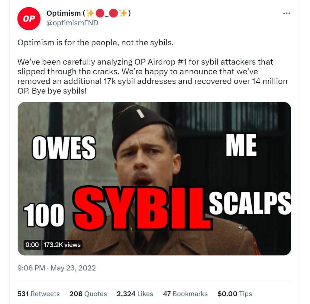 Optimism 上面的推文显示了他们如何从 Sybil 攻击者那里恢复空投,所以这正是我们在这里倾向于避免的。