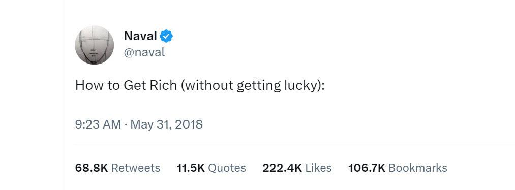 Naval 写了一篇关于如何不靠运气致富的文章,每个人都应该注意到这一点,我打赌你一定要阅读这篇文章,以控制自己。