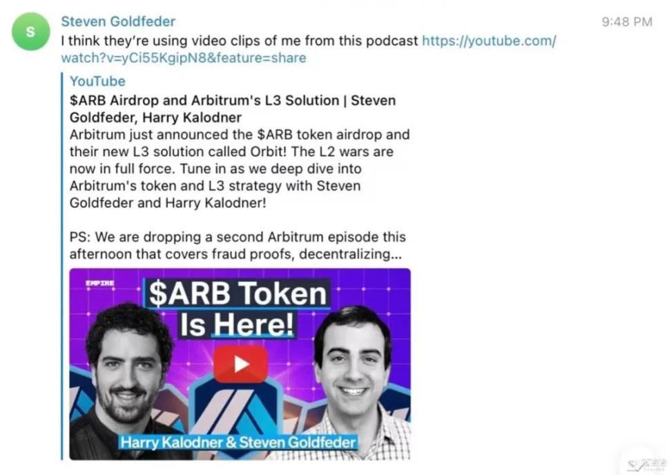 与此同时,「Arbitrum CEO Steven Goldfeder 」始终未在该 Telegram 聊天群里出现。