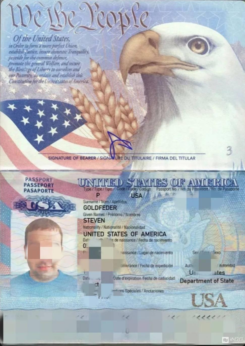 「Laneruhl Elizabeth」提供,据称是「Arbitrum 全球 CEO Steven Goldfeder」的护照和签名信息