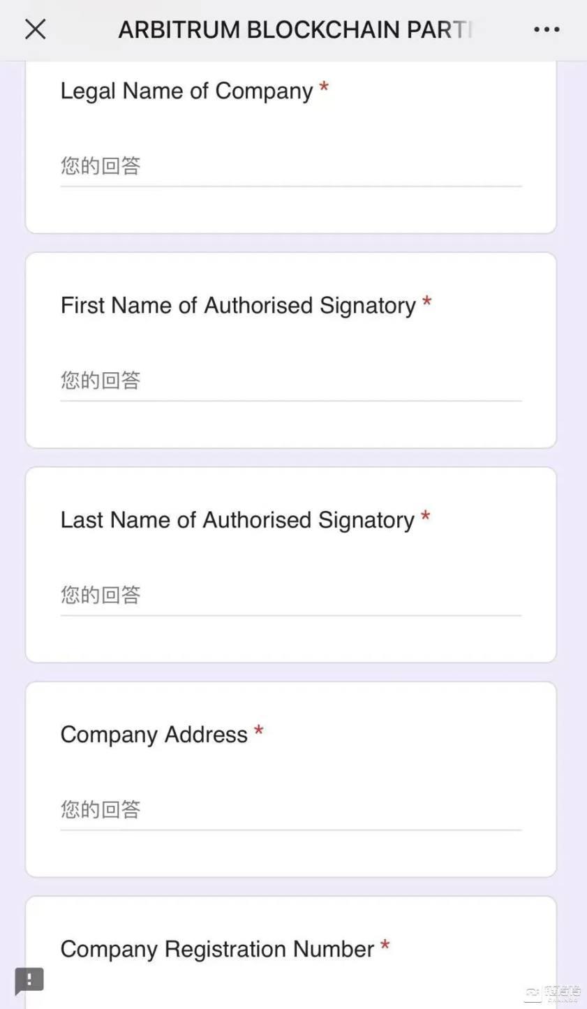 「官网邮件」中附带的 ARBITRUM BLOCKCHAIN PARTNERSHIP FORM 合作表格, 「Arbitrum」官方需要的合规 KYC 认证内容