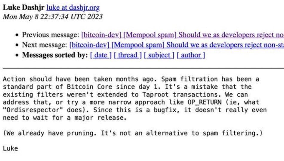 比特币开发者Luke Dashjr表示,“几个月前就应该采取行动了。垃圾信息过滤一直是比特币核心的标准部分。现有的过滤器没有扩展到Taproot交易是一个错误,因为这是一个漏洞修复,实际上不需要等待主要版本发布。”