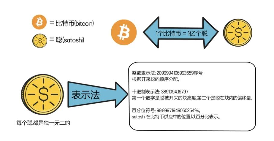 Satoshis(聪)不是比特币,而是比特币的最小单位, 1 个比特币可以分割成 1 亿个聪。
