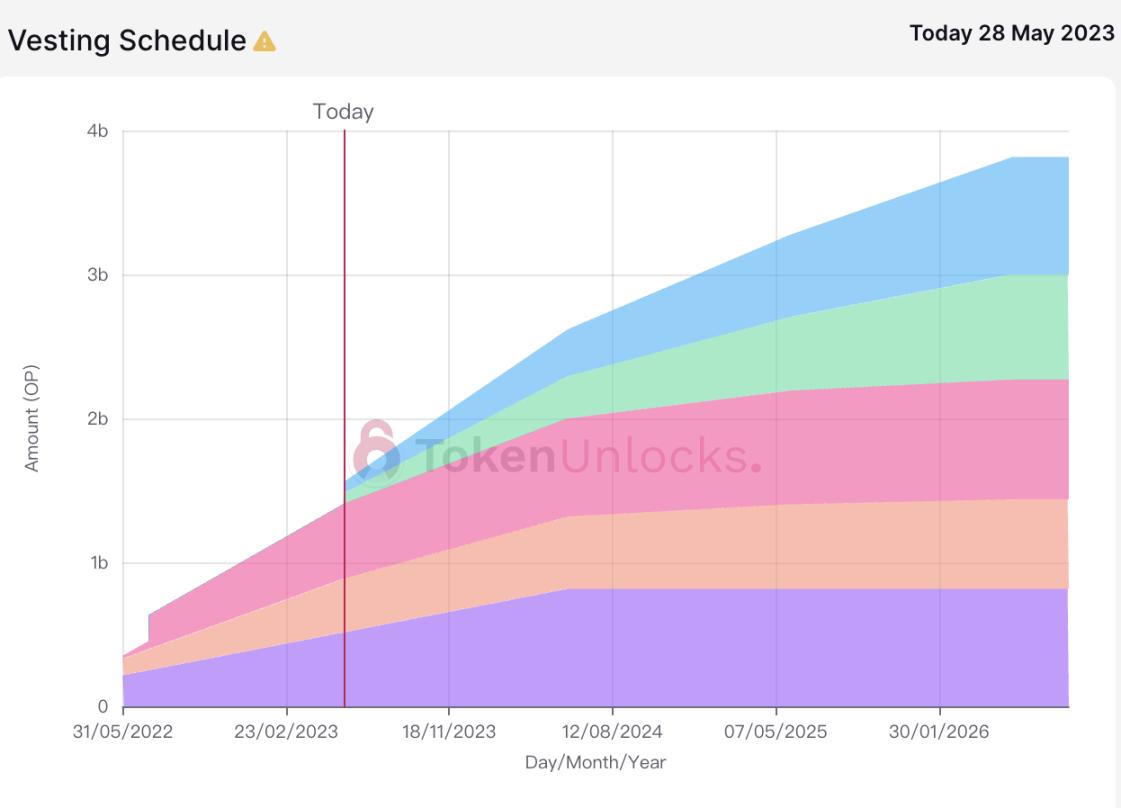 Optimism 代币 OP 将于 5 月 31 日 08:00:00 解锁 154,618,822.65 枚(约 2.49 亿美元),占总供应量的 3.6%;