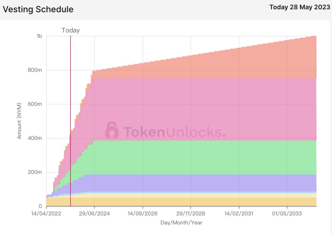 Nym 代币 NYM 将于 6 月 2 日 08:00:00 解锁 25,000,000 枚(约 478 万美元),占总供应量的 2.5%;