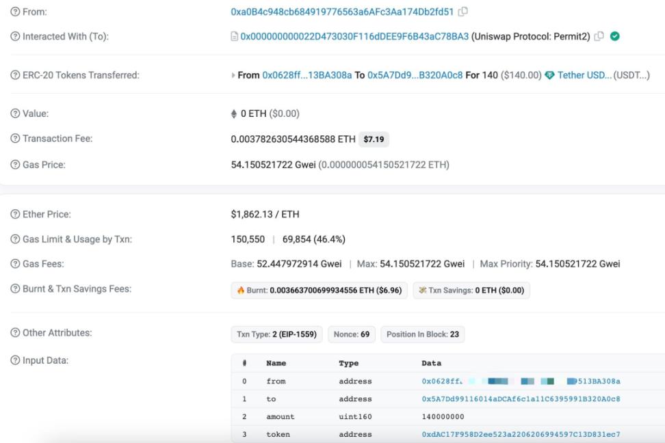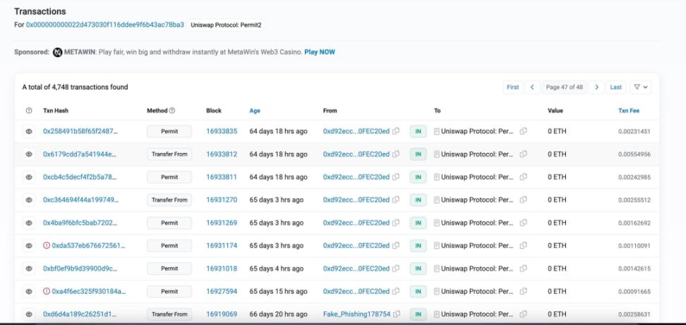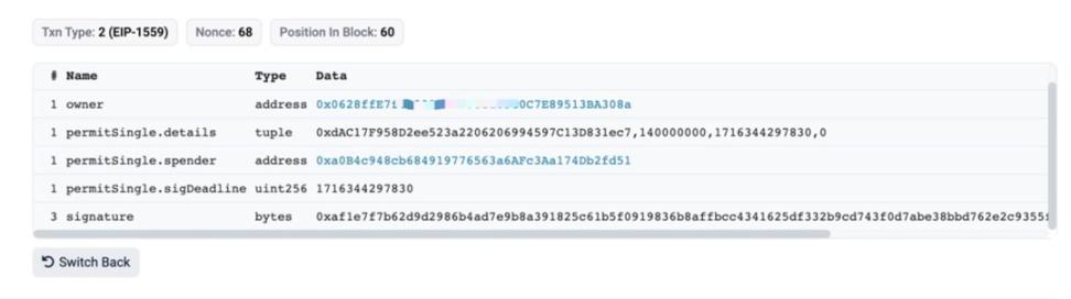 这也就意味着,只要你在 2023 年之后与 Uniswap 有过交互并授权额度给 Permit2 合约,你就会暴露在这个钓鱼骗局的风险之下。