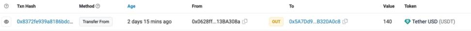 在区块链浏览器中可以看到小 A 钱包被盗的这笔 USDT 是通过 Transfer From 函数进行转移的,在这进行科普一下,当我们在以太坊上进行 Token 转账的时候,其实是调用了该 Token 智能合约的 Transfer 函数,这两者的区别简单来说 Transfer 是资产拥有者本人进行操作把 Token 转移给其他地址,而 Transfer From 是第三方将地址内的 Token 转移给其他地址。这也就意味着这笔被盗的资产是另外一个地址进行操作把 Token 转移走的,而非钱包私钥泄漏。
