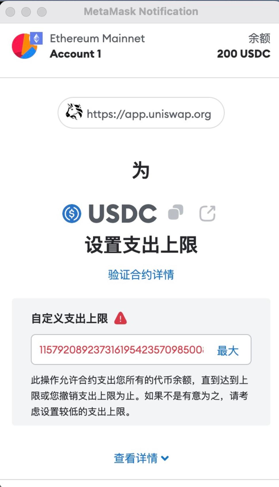 而往回翻小 A 的交互记录我们会发现,小 A 之前使用 Uniswap 的时候点击了默认的授权额度,也就是几乎无限的额度。
