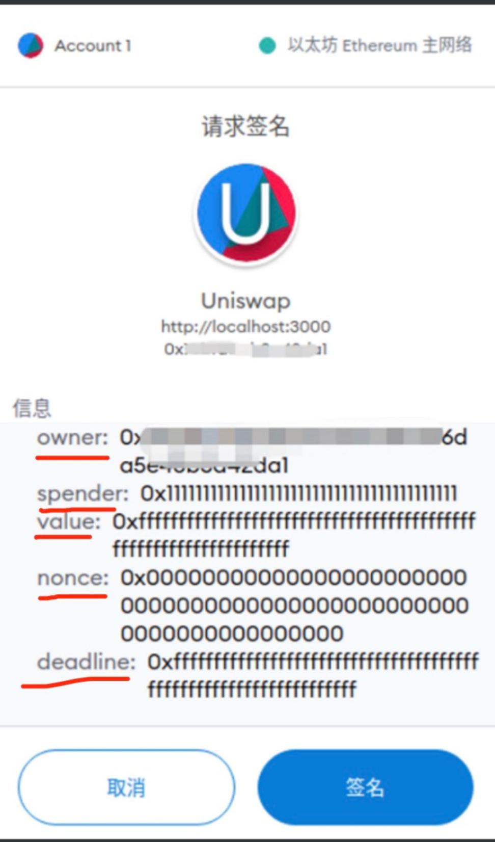Permit 的签名格式通常包含 Owner、Spender、value、nonce 和 deadline 这几个关键格式,如果你想享受 Permit2 带来的便利和低成本的话一定要学会识别这种签名格式。( 下载安全插件是一个很好的选择)