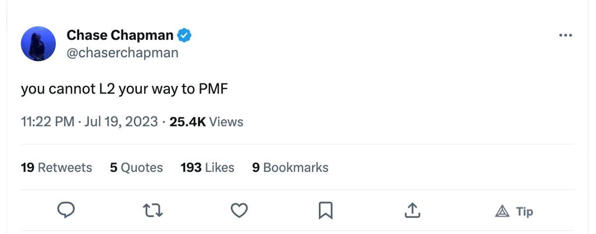 如果我们相信区块链是交易的基础设施,并且互联网上的所有行为都将成为交易,我们可能不可避免地需要低成本的协议和固定成本。或者,我们可能最终会拥有 50 个新的 L2,每个都有极高的估值,因为市场喜欢新鲜事物。市场可以促进两者,这也许就是其中的美妙之处,既有实用性,也有投机。