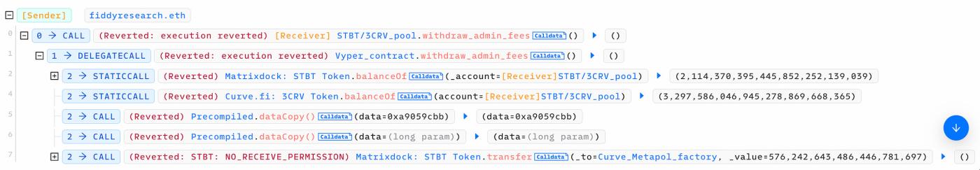 创建池后不久,人们发现 Curve 合约需要 STBT 服务提供商(Matrixdock)列入白名单才能提取管理费并转换为 3CRV。此后不久,他们的团队就解决了这个问题,尽管这是将许可资产引入 Curve 的一个重要考虑因素。