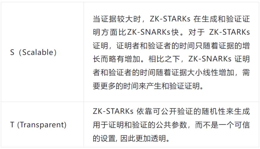 ZK-STARK 不需要可信的设置。ZK-STARK 是 for Zero-Knowledge Scalable Transparent Argument of Knowledge 的缩写。相比 ZK-SNARK, ZK- STARK 有更好的可拓展性和和透明性。