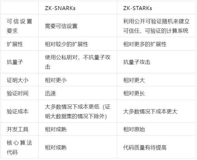 ZK-SNARK 是零知识证明是区块链中的第一个实际应用,因此大多数 ZK rollup 采用 ZK-SNARK, 具有更成熟的开发者系统和工具。尽管 ZK-STARK 也有以太坊基金会的支持,但是相比之下采用率不足,基础工具还有待完善。