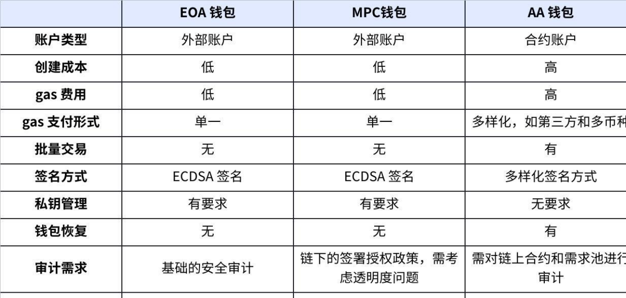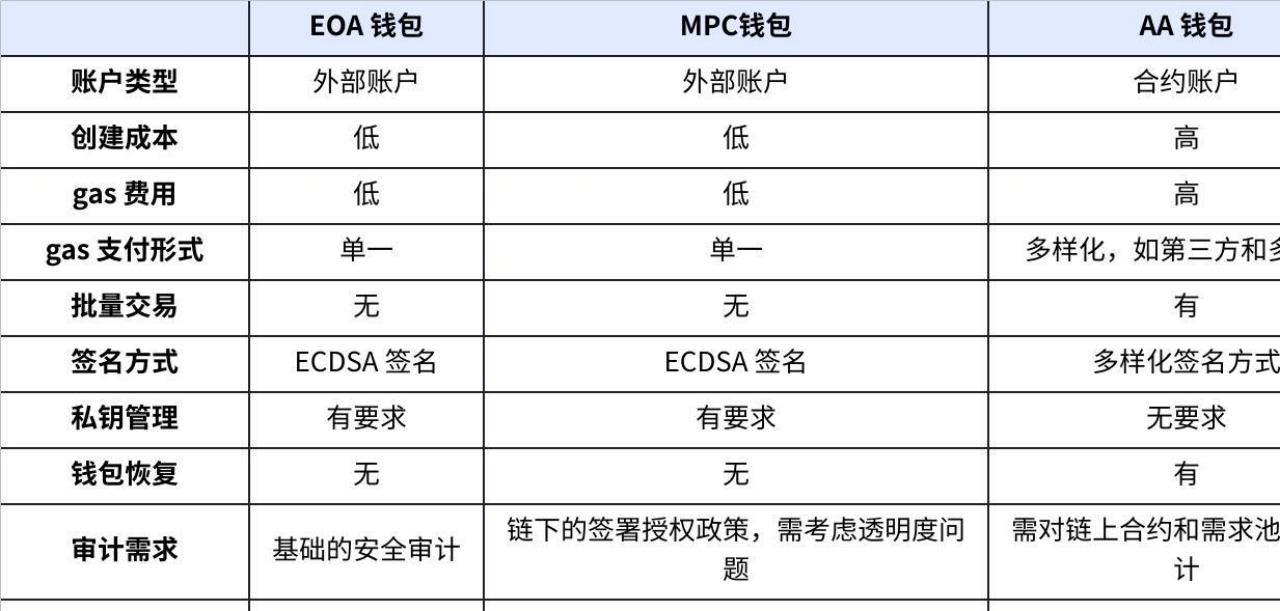 - 以太坊有两种类型的账户:外部账户(EOA)和合约账户( CA),EOA 作为传统方案过于依赖密钥管理和 ECDSA 签名,操作逻辑死板,其让签名权和账户严格绑定的机制会影响新用户的进入和后续发展;