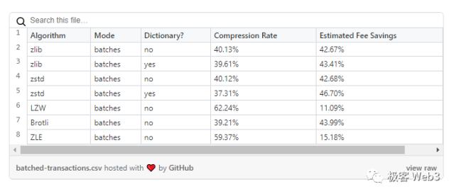 (Optimism 官方公布的各种压缩算法实际取得的压缩率)
