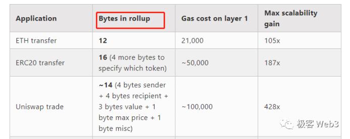 这里需要解释下 Rollup 的数据压缩率。Vitalik 在 2021 年曾过分乐观的估计,乐观 Rollup 可以把交易数据尺寸,压缩至原先的 11%。比如,一笔最基础的 ETH 转账,原本占用 calldata 大小是 112 字节,可以被乐观 Rollup 压缩到 12 字节,ERC-20 转账可以压缩到 16 字节,Uniswap 上的 Swap 交易压缩到 14 字节。按照他的说法,以太坊每秒最多能记录 1 万笔左右的 L2 交易数据(各类型掺杂在一起)。但按照 Optimism 官方在 2022 年披露的数据,实践中的数据压缩率,最高只能达到约 37%,与 Vitalik 的估算差了 3.5 倍。