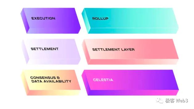 众所周知,Celestia 按照模块化区块链的工作流程,归纳出了 4 个关键组件:
