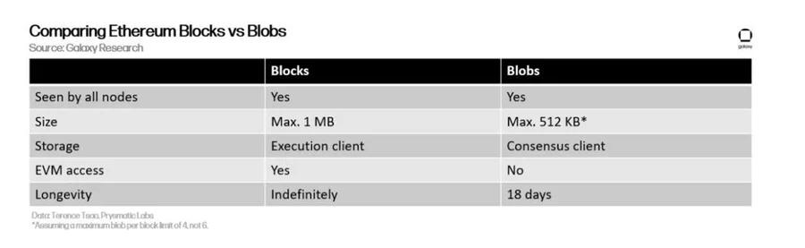 单个 blob 的存储空间为 128KB,EIP-4844 初识设置为 1 个区块外挂 4 个 blob,未来会扩展至 64 个。