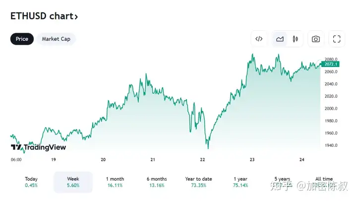 以太坊 (ETH) 最近收复了一个重要的价格点,突破了 2,000 美元的门槛,表明网络活动强劲激增。这种复苏反映了该网络强大的基本面,包括去中心化应用程序(DApp)的增长和以太坊(ETH)在 NFT 市场中的主导地位。尽管面临监管挑战,以太坊(ETH)仍表现出了韧性。