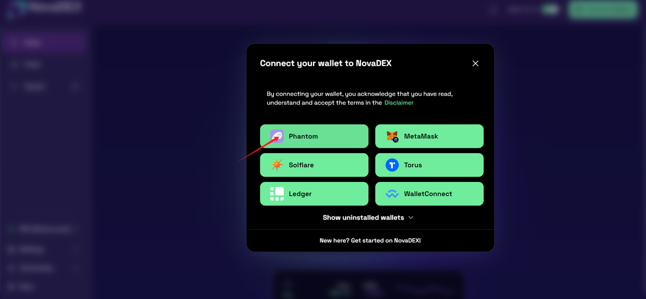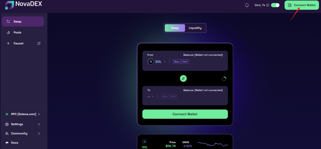 网址:https: //app.novadex.io/swap/