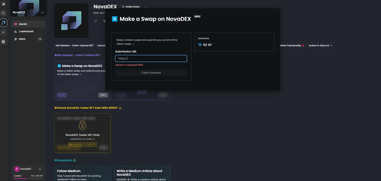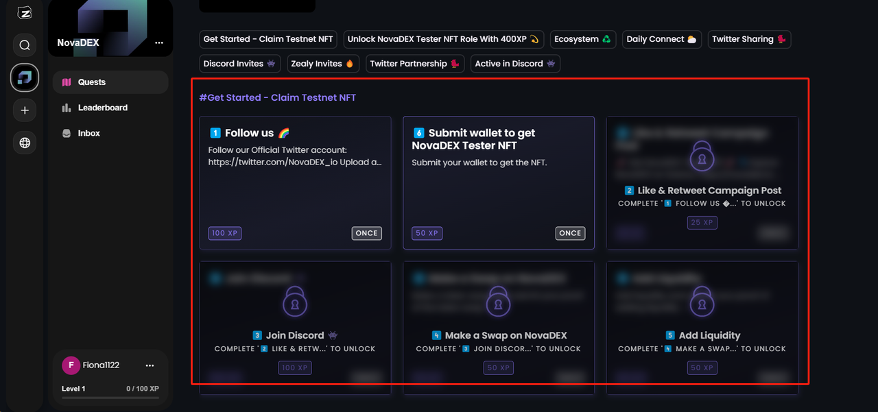 网址:https://zealy.io/c/novadex/