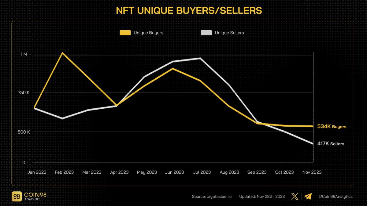 独立卖家数量逐渐减少,#NFT 买家目前超过 NFT 卖家