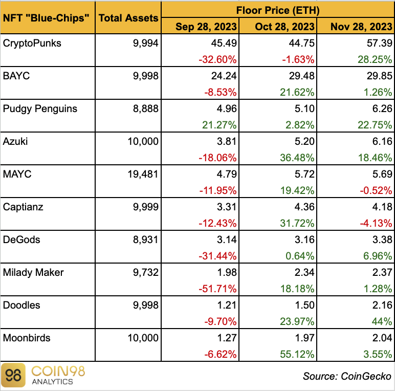大多数蓝筹#NFT 价格在过去 3 个月也呈现正成长