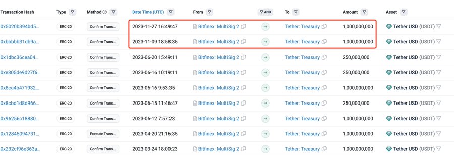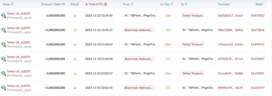 5B $USDT 于 11 月在 # TRON和 #Ethereum 上铸造。